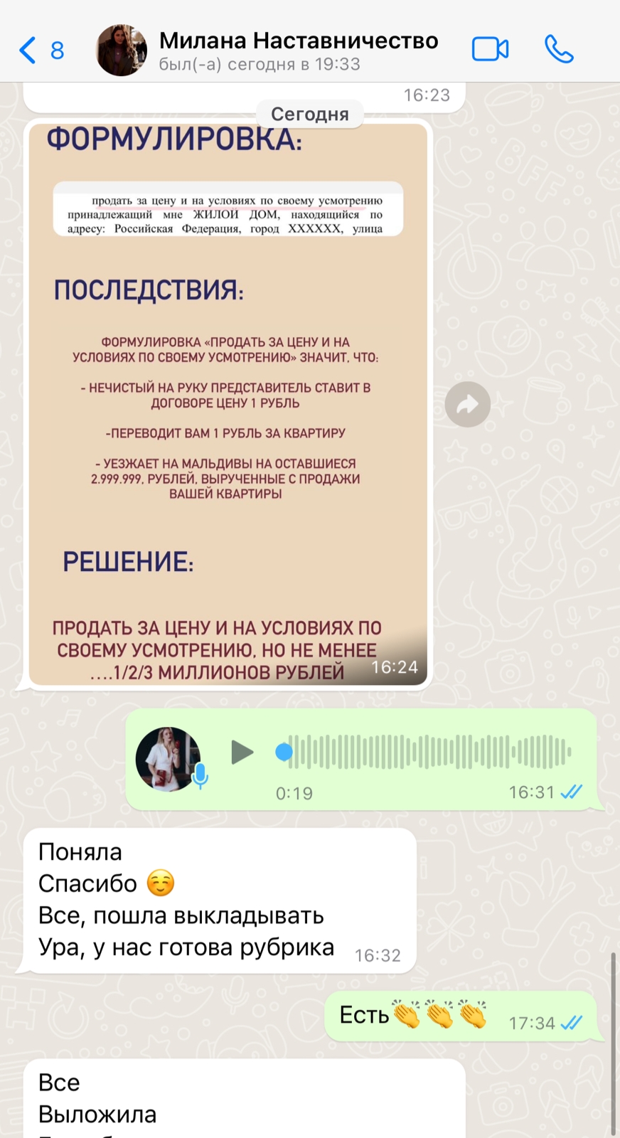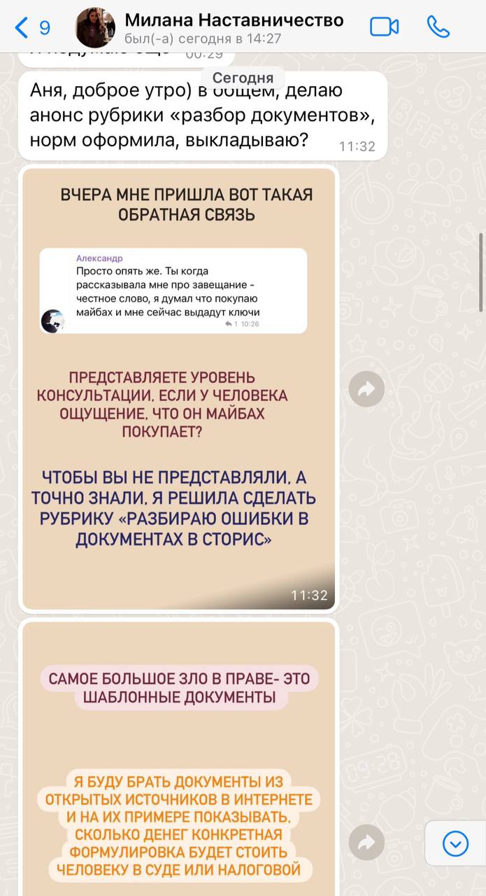 Аккаунт: @scheperina Тариф «ВИП»: сопровождение в течение всего периода наставничества + совместный запуск первого в жизни курса (и первые заработанные деньги на своей экспертности в инстаграм)